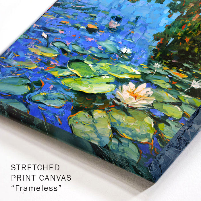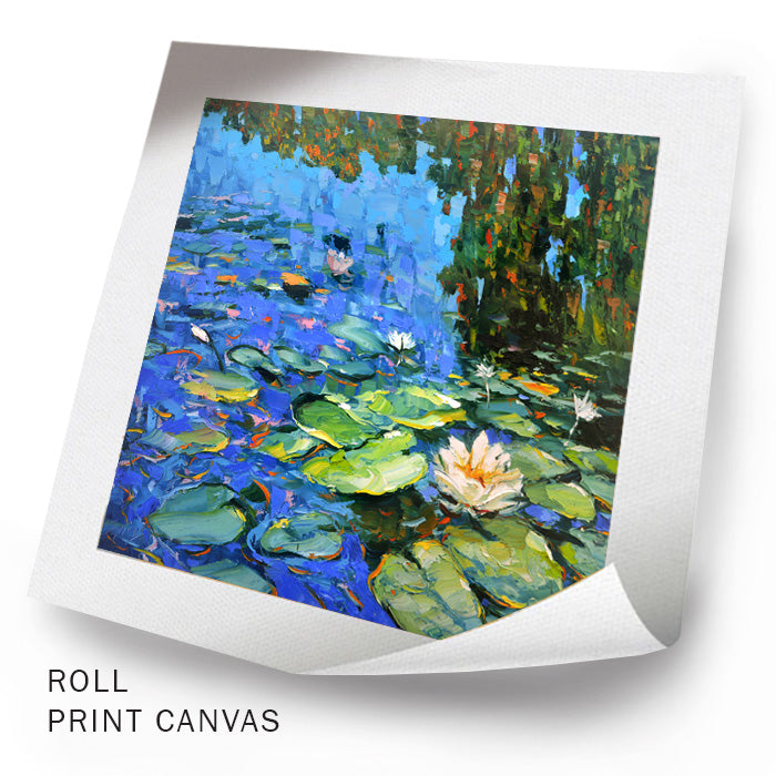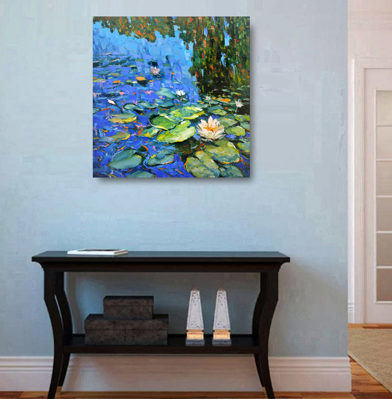 Pintura de nenúfares, Pintura de estanque con reflejos de agua y nenúfar.