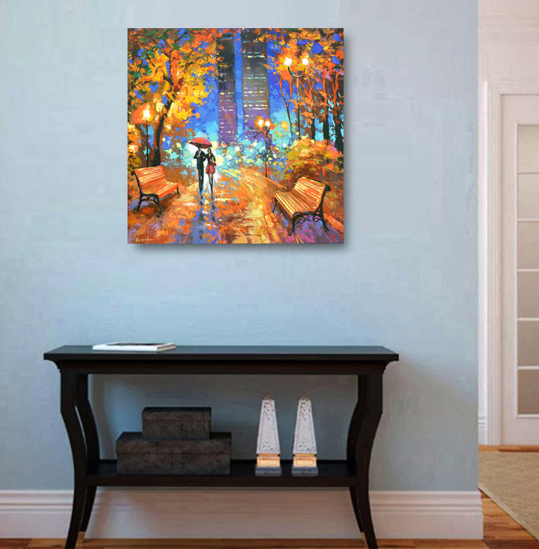 Pintura sobre lienzo de paisaje urbano de noche