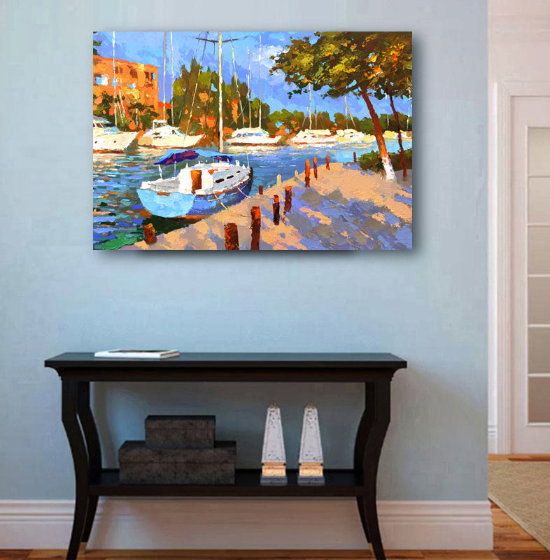 Estimated 3-5 business days to ship, and a total of 5-9 business days to arrive. Tracking number available at checkout. The painting is printed on canvas, which is the best material for painting. The painting has bright color and does not fade. Great gift.